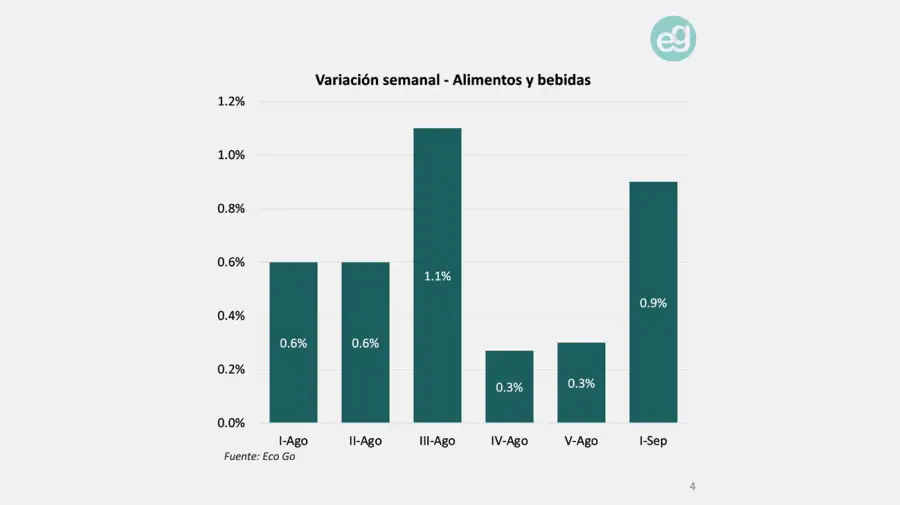 En la segunda semana de septiembre, los alimentos y bebidas volvieron a aumentar
