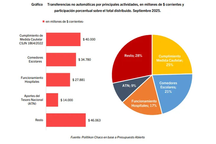 “En el noveno mes del año, las transferencias no automáticas del gobierno nacional a provincias y CABA totalizaron $162.723 millones (etapa pagada). Respecto a septiembre de 2024, estos envíos cayeron 56,1% en términos reales; se trata del segundo descenso consecutivo”, señaló la consultora Politikon Chaco.