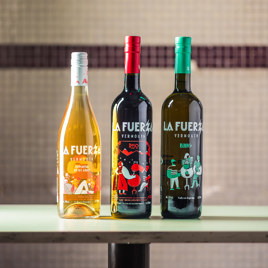 La Fuerza nació en 2018 como el primer vermouth de los Andes, con una producción íntegramente mendocina: desde la cosecha de la uva hasta la destilación y el embotellado. Cada botella combina vino, botánicos y hierbas naturales, aguardiente de vino y mosto de uva, elaborados a partir de Malbec y Torrontés locales, junto a hierbas silvestres recolectadas al pie de la cordillera.
