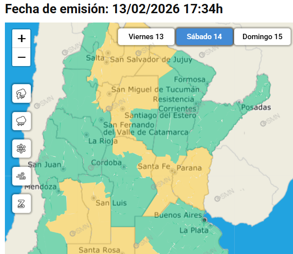 Desde el área de Defensa Civil de la provincia se informó que el Servicio Meteorológico Nacional (SMN) emitió una alerta amarilla para todo el territorio de Entre Ríos.
