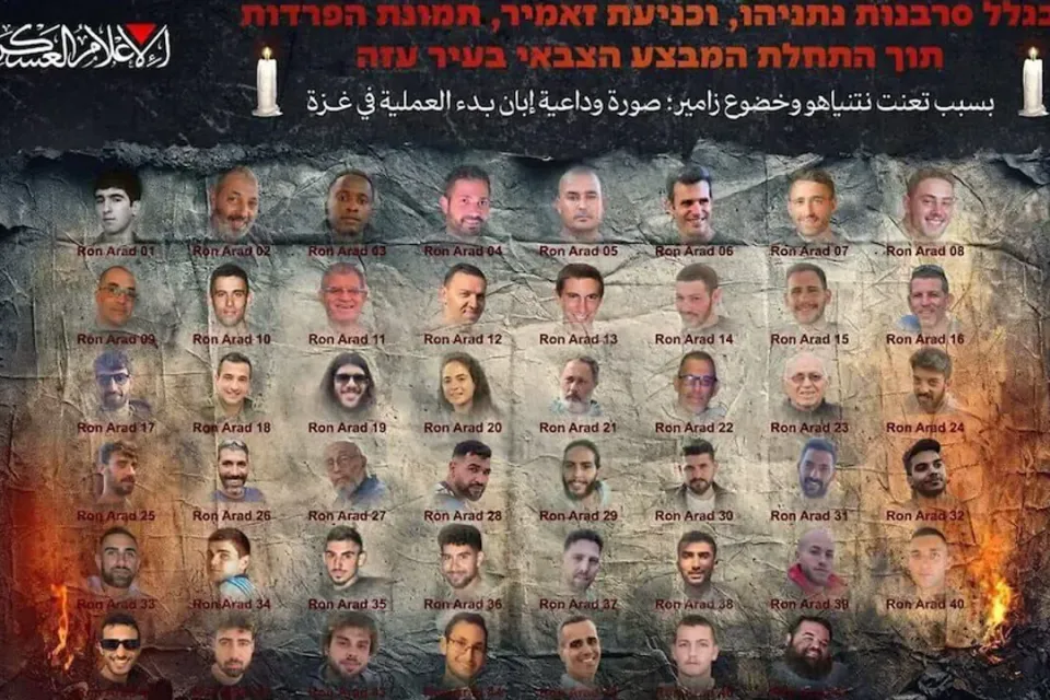 "Debido a la negativa de Benjamin Netanyahu y la capitulación de Eyal Zamir, una imagen de despedida mientras empieza la operación militar en la ciudad de Gaza", indició la Brigada Ezeldín al Qasam, brazo armado de la organización terrorista, en referencia al primer ministro de Israel y al jefe del Estado Mayor del Ejército de dicho país, respectivamente.