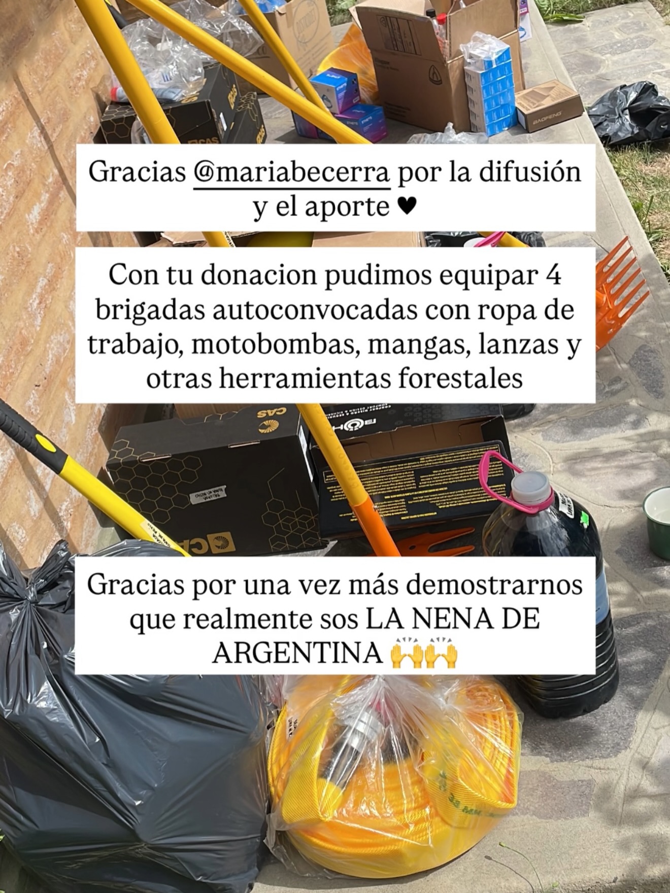 "Gracias por la difusión y el aporte. Gracias por demostrarnos una vez más que sos realmente la nena de Argentina", escribió a través de una historia de Instagram. Además, compartió una imagen con los elementos adquiridos.