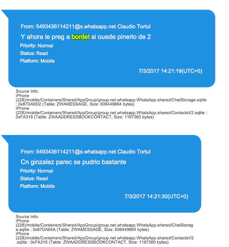 Las conversaciones entre los hermanos Tórtul arrancan en diciembre de 2016 y llegan hasta abril de 2024, cuando se secuestraron los teléfonos. En total son 25.557 carillas repletas de chats, audios y fotos obtenidos a través sistema israelí Cellebrite.